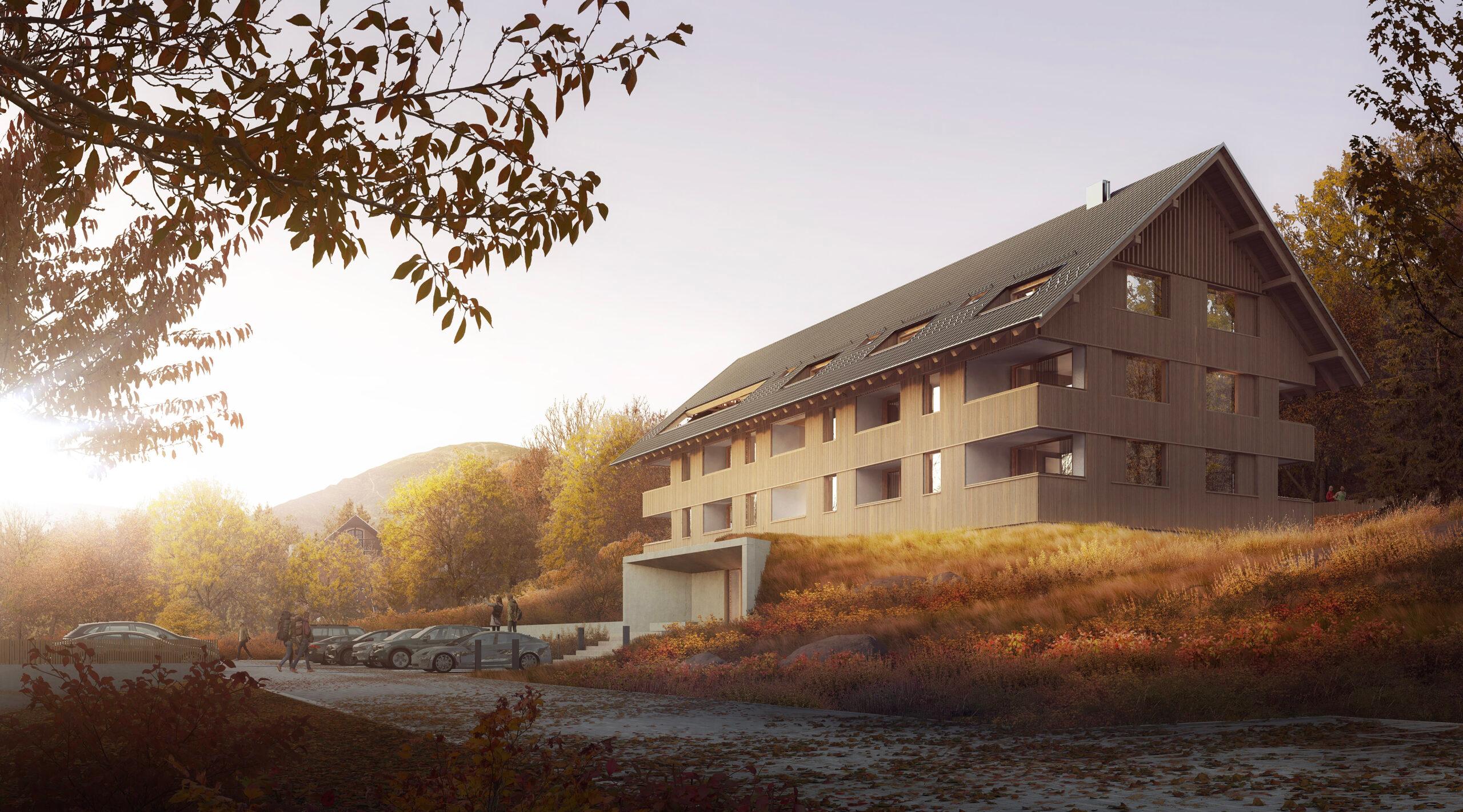 Drewniana elewacja subtelnie nawiązuje do historii górskiego budownictwa, a panoramiczne widoki na otaczające szczyty nadają każdemu wnętrzu wyjątkowy charakter. Podziemny łącznik z już działającym Cristal Resort Szklarska Poręba zapewni dostęp do bogatej infrastruktury rekreacyjnej – restauracji, basenu, zewnętrznego jacuzzi, sauny, łaźni parowej oraz sali zabaw dla dzieci.